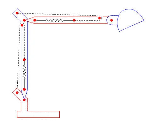 For those who want to know more about the actual mechanics, the idea is to use two coil springs around the pivoting arm. This helps balance the lamp so it doesn’t fall over.